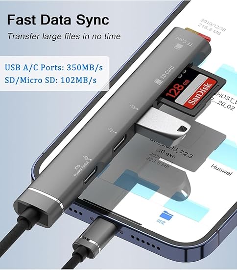 USB3.0 bağlantı noktaları ile 5Gbps’ye kadar veri aktarım hızı, büyük dosyalarınızı ve resimlerinizi saniyeler içinde aktarır. Ve bir SD/TF kart yuvası, kameranızda depolanan resimler ve videolar için hafıza kartınıza erişmenizi sağlar, daha da şaşırtıcı olan iPhone 15 serisi için tamamen uyumludur.