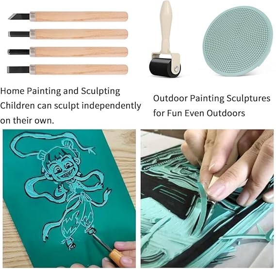 Kaliteli malzemeler: Oyma blokları yüksek kaliteli kauçuktan yapılmıştır, yumuşak ve ince dokulu ve dayanıklıdır. Linolyum blokları PVC malzemeden yapılmıştır, kolay düz kıvrımlar elde edilir ve kauçuğun yüzeyi mürekkebi hafif tutar, çevre dostudur.