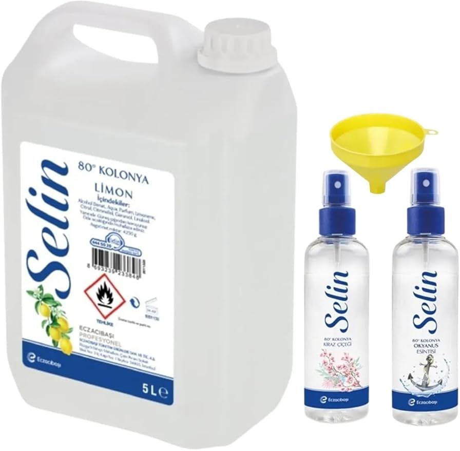 Litre 80° Selin Limon Kolonyası + 2 Adet Selin 150 ML Sprey 80° Limon KolonyasıLitre 80° Selin Limon Kolonyası + 2 Adet Selin 150 ML Sprey 80° Limon Kolonyası