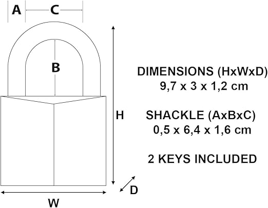 Ürün detayları: Asma kilit (YxGxD) 9,7 x 3 x 1,2 cm; dirsek (AxBxc) 0,5 x 6,4 x 1,6 cm; 2 tuş