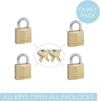 Aile paketi: 4 aynı kilitli asma kilit ve 4 anahtar; Aileler için ideal