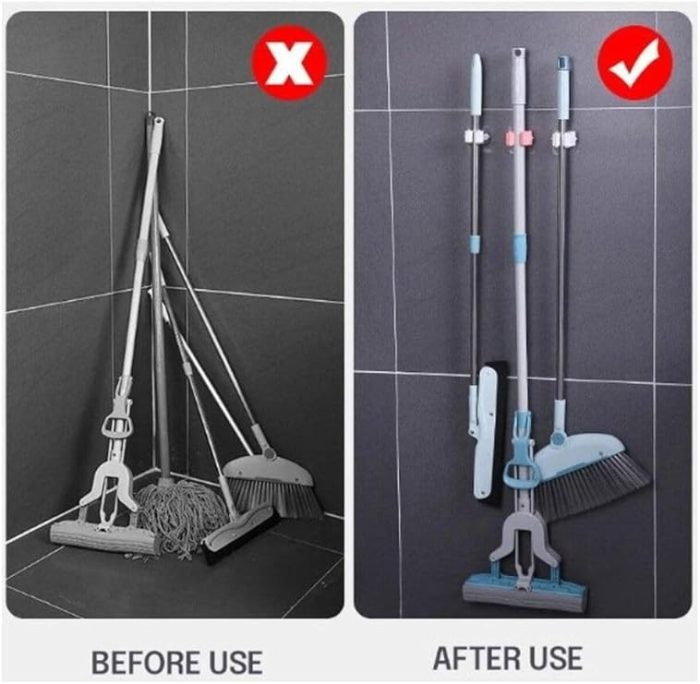 lü Yapışkanlı Pratik Mop Temizlik Fırçası Tutucu Paspas Süpürge Fırça ve Mop Askısı beyaz