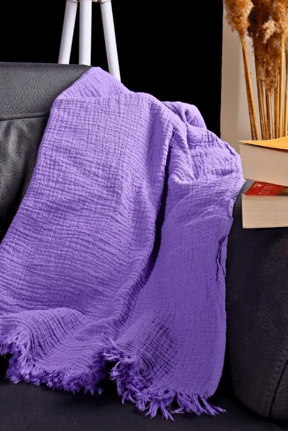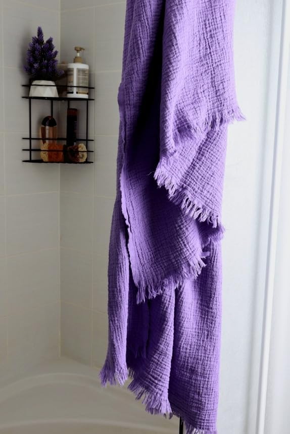– Lüks Müslin Plaj Havlusu Peştemal – 100% Pamuk, Yüksek Kaliteli, Yumuşak, İnce, Çabuk Kuruyan, Ekstra Büyük Müslin Banyo veya Plaj Havluları (Lila Mor, 90 x 180 cm Büyük Boy)