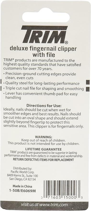 TIRNAK KESME – Trim Deluxe Tırnak Makası, her seferinde temiz eşit kesimler sağlayan hassas taşlanmış kesme kenarlarına sahiptir. Ayrıca, kolay kullanım için kullanışlı bir başparmak pedi ile istediğiniz sonuçları güvenle elde edersiniz.