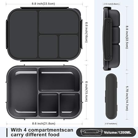 İyi Porsiyon Boyutları:Boyut U 22,5 cm x G 16 cm x Y 5,8 cm 1200 Ml’lik Mükemmel Tasarım,Çocuklar İçin Bento Öğle Yemeği Kutusunu Büyük Kapasiteli ve Hafif Yapar (Sadece 0,3 kg / 0,66 lb ağırlığındadır,bu da çocuğunuzun sırt çantasına yük olmaz),4 Bölmeli Bento Kutusu Yetişkin Öğle Yemeği Kutusu,Öğle Yemeğinizi Daha Besleyici ve Dengeli Hale Getiren Öğle Yemeğinizde Daha Fazla Çeşitlilik Paketlemenizi Teşvik Eder.