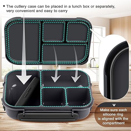 Sızdırmaz Bölmeler Ayrılmış Tasarım:Katmanlar arasında sızıntıyı önlemek için katmanlar arasında kauçuk bir halka vardır,Lütfen kapağı taktığınızda her silikon halkanın bölmeyle hizalandığından emin olun ,4 Kilit Klipsinin Kapatılması ve Açılması Kolaydır,Kapağı Sıkıca Tutarlar,Böylece Gevşek Kapaklı Çocuk/Yetişkin Yemek Kutusu Kaplarına Sahip Olmazsınız,Sızdırmaz Tasarım,Taşırken Yiyeceklerin Dışarı Sızmamasına İzin Verir.