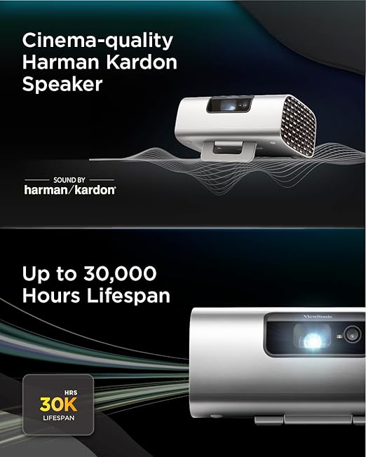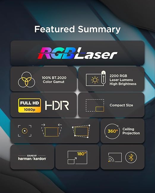 M10 FHD 2200 LUMEN HARMAN KARDON HOPARLORLU TAŞINABİLİR RGB LAZER AKILLI PROJEKSIYON