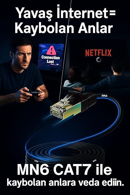 5-Evrensel Uyumluluk: Modem, router, PC, laptop, oyun konsolları ve daha fazlasıyla tam uyumlu! Piyasadaki standart kabloların çok ötesinde! MN6 M109F ile hızınızı artırın, bağlantınızı güçlendirin, farkı hissedin!