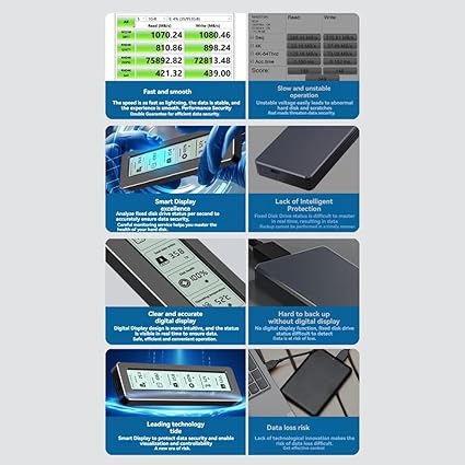 Sabit sürücü durumunu izleme: Sabit sürücü kullanımını gerçek zamanlı olarak izlemek için HD ekranla donatılmıştır. Ekran içeriği şunları içerir: Disk durumu/çalışma süresi/çalışma sıcaklığı/toplam veri yazma/USB güç beslemesi.