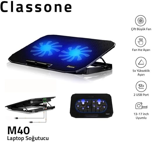M40 Gaming Laptop Soğutucu Notebook Standı, Mavi Led,14-15.6-17 inch uyumlu, 2 Fan, 2 Usb