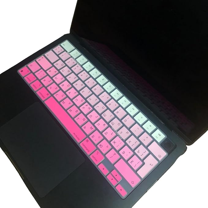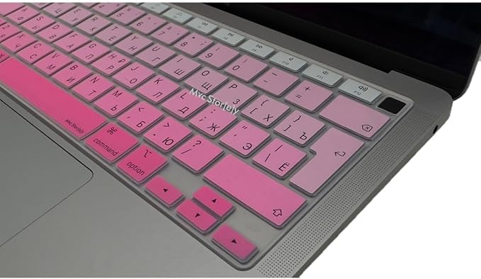 MacBook Air 13.6–15.3 ve Pro 14–16 Uyumlu Rusça Klavye Koruyucu Silikon İnce Hafif Gradient Kaplama Toz Sıvı Koruyucu UK Ters L Enter M1–M5 Uyumlu Pembe