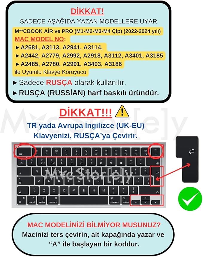 UK TERS L ENTER UYUMLU – ISO DIZILIM DESTEGI: Dogru yerlesimli Rusca karakterler ile hizli ve rahat yazim deneyimi.
