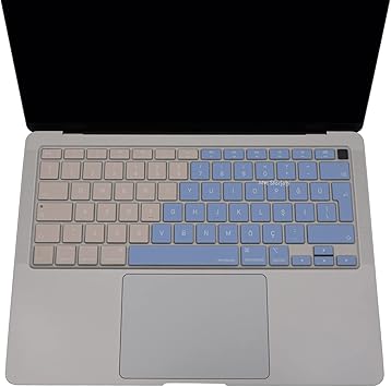 MacBook Air 13 inç Klavye Koruyucu – A2179/A2337 M1 Uyumlu • Türkçe Q Baskı Stiker • Ultra İnce Silikon Toz & Sıvı Koruma Filmi Mavi Pembe