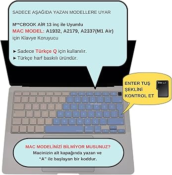 “MacBook Air 13 inç Klavye Koruyucu – A2179/A2337 M1 Uyumlu • Türkçe Q Baskı Stiker • Ultra İnce Silikon Toz & Sıvı Koruma Filmi Mavi Pembe” için yorum yapan ilk kişi siz olun Yanıtı iptal et