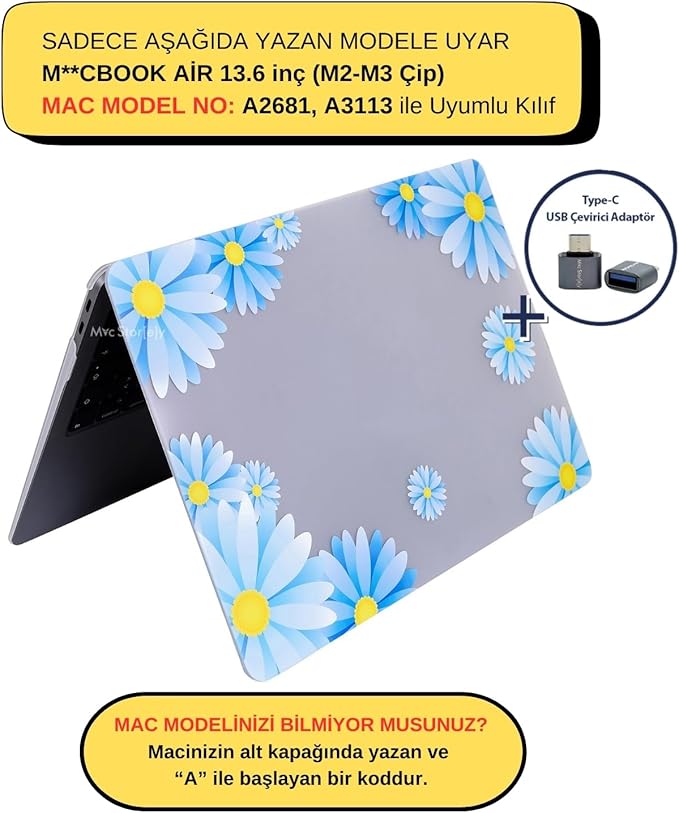 MacBook Air 13 inç M2 M3 M4 ile birebir uyumlu sert kapak kılıf – A2681 A3113 A3240 modelleri için özel kalıp