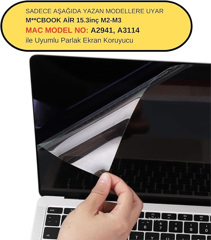 M2 M3 M4 PARLAK GORUNTU DENEYIMI: MacBook Air 15.3 inç M2 M3 ve M4 modeller için geliştirilen parlak Anti-Scratch yüzey, Retina ekran netliğini ve renk canlılığını korur.