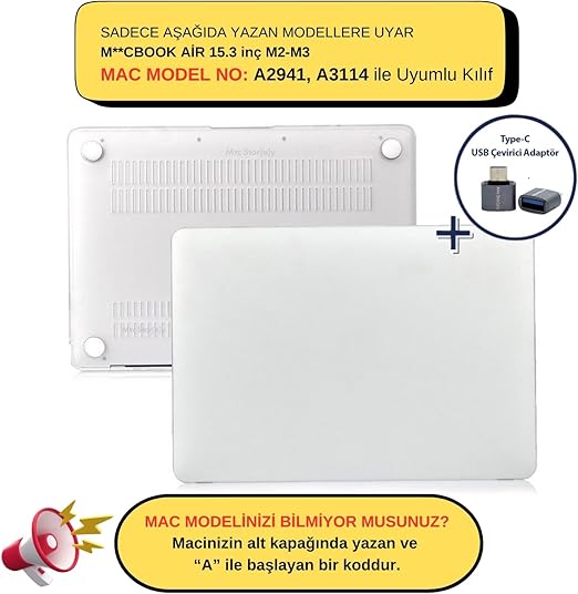 ⚠️ MacBook Kılıfı Paket İçeriği; Alt ve Üst Kapak + McStorey Markalı USB Çoğaltıcı Type-C Çevirici Adaptör