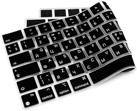 MacBook Klavye Koruyucu RUSÇA BASKILI US AMERİKAN- RETURN Enter Tipi, Air 13,6-15,3inç- Pro 14,2-16,2inç M1-M2-M3-M4 Pro MAX Uyumlu, Silikon Klavye Filmi, Ultra İnce Hafif Yıkanabilir Siyah