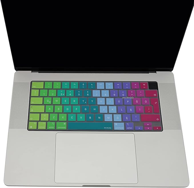 MacBook Klavye Koruyucu Silikon Kılıf TÜRKÇE Q BASKILI UK-TERS L- Enter Tipi Air 13,6-15,3inç- Pro 14,2-16,2inç M1-M2-M3-M4 Pro MAX Uyumlu, Ultra İnce Hafif Yıkanabilir Pembe Yeşil