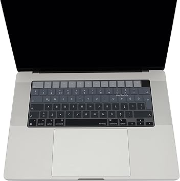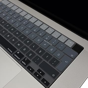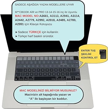 MacBook Klavye Koruyucu Silikon Kılıf TÜRKÇE Q BASKILI UK-TERS L- Enter Tipi Air 13,6-15,3inç- Pro 14,2-16,2inç M1-M2-M3-M4 Pro MAX Uyumlu, Yıkanabilir Silikon Klavye Filmi Siyah Gri