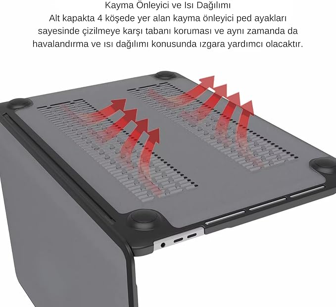 HEAT-VENT ISI DAĞITIMI: Havalandırma ızgaralı alt panel ısı dağılımını destekler, yoğun kullanımda performansa yardımcı olur.