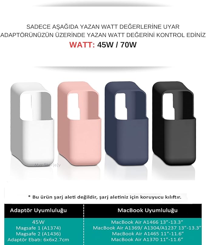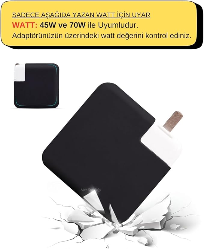 UYUMLU ADAPTÖRLER: 45W MagSafe 1, 45W MagSafe 2 ve 70W USB-C şarj adaptörleriyle uyumludur.