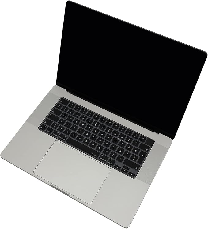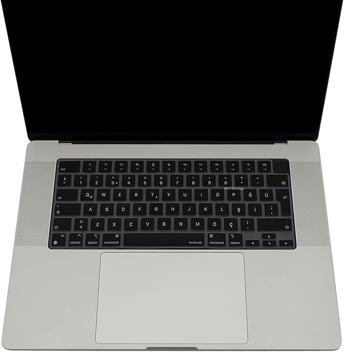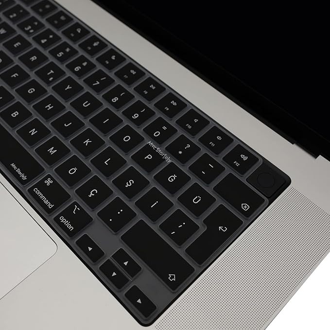 MacBook Türkçe‑Q Klavye Koruyucu Silikon Kılıf Kapak MacBook Air 13,6-15,3 Pro 14-16 inç Uyumlu M5/M4/M3/M2/M1 Touch ID – Toz, Dökülme ve Çizilmelere Karşı Koruma Siyah