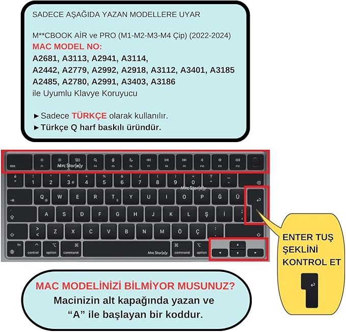 UK TERS L ENTER UYUMLU – DOGRU KLAVYE DUZENI ICIN Sadece UK/EU Ters L Enter düzenine sahip MacBook modelleri için özel üretilmiştir. US Return-Enter modellerle karışmaz.