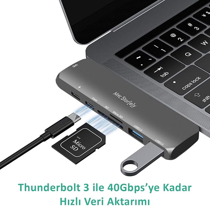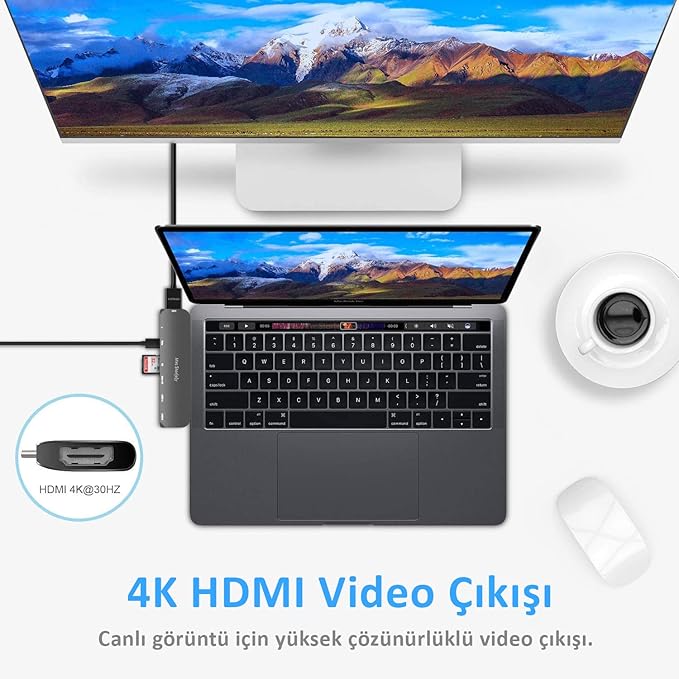 Günlük Kullanım İçin İdeal Genişletme: 4K HDMI görüntü çıkışı, USB 3.0 portları ve SD/microSD kart okuyucu ile harici ekran, çevre birimleri ve veri aktarımı ihtiyaçlarını tek bir hub üzerinden karşılar. Power Delivery şarj geçiş desteği sayesinde kullanım sırasında MacBook’unuzun şarj edilmesine olanak tanır.
