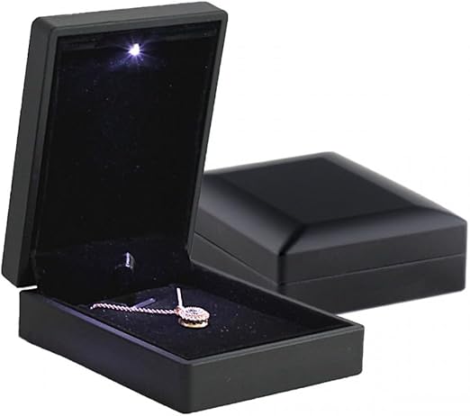 LED ışık: Kutuyu açar açmaz üst kısımdaki küçük ışık parlar ve içine koyduğunuz öğeye ışık tutar. Pırlantayı aydınlatmak için mükemmel olan bir kolye ile ışıltıyı gösterir.