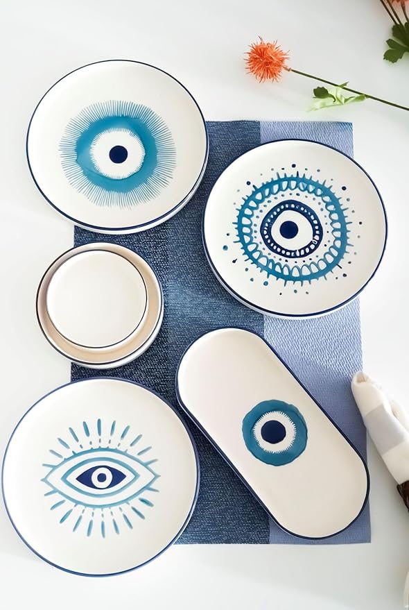 Made 14 Parça 6 Kişilik Nazar Boncuklu Kahvaltı Takımı