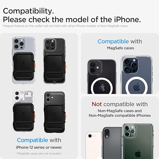 Sadece iPhone 16 / 15 / 14 / 13 / 12 serisi Magsafe ile uyumludur. Cüzdandaki manyetik fonksiyon diğer iPhone modelleri veya Magsafe olmayan kılıflarla çalışmaz.