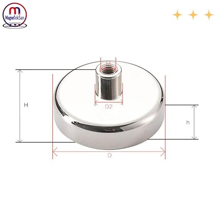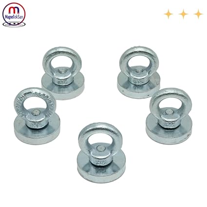 Magneteksan Çok Güçlü Deniz Mıknatısı – Fishing Magnet – Neodyum Daimi Çelik Mıknatıs – Halkalı Pot Mıknatıs – Nikel Kaplı – Paslanmaz – Kararma Yapmaz – Tuzlu Suya Dayanıklı (Ø40 mm (40 kg))