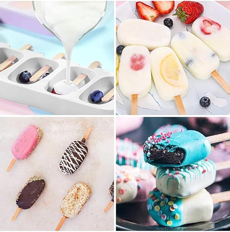 Magnum Dondurma Kalıbı 4’lü, Buzlu Dondurma Kalıbı, Ev Yapımı Tatlılar, Çikolatalı Dondurma ve Donmuş Yoğurt İçin, BPA’sız, Esnek, Gıda Dostu