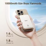 Manyetik Magsafe özelliği ile iPhone ve Android uygun cihazlarınızı kablosuz olarak şarj edebilirsiniz. Magsafe kablosuz şarj, dahili type-c kablolu şarj etmenin haricinde kutu içerisinden çıkan type-c to type-c kablo ile powerbankin yan tarafında bulunan USB-C porttanda 20W a kadar şarj işlemi sağlayabilirsiniz. Bu port hem powerbanki hemde akıllı cihazlarınızı şarj etmek için çift yönlü (giriş-çıkış) olarak kullanılmaktadır. Dahili kabloyu type-c porta takarak powerbankinizi yanınızda rahatça taşıyabilirsiniz.