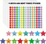 Major Selection Yıldız Sticker Çıkarma Seti,600 Adet 4 Syf Okul Tebrik Stickerı,Öğretmen Öğrenci Hediyesi, Renkli