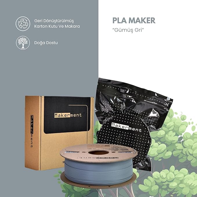 Maker, 1.75mm 1kg 3D Yazıcı PLA Filament (Gümüş Gri)