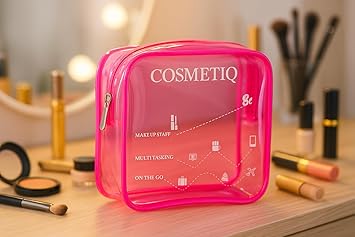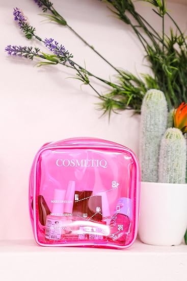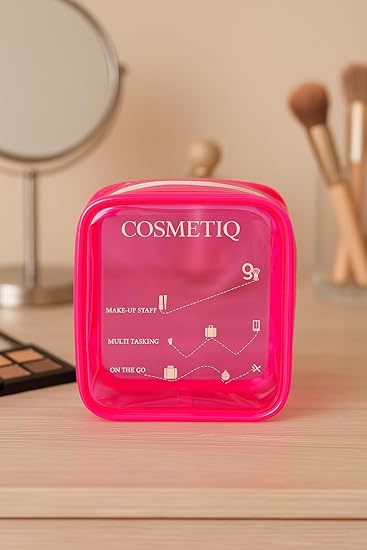 Renk ve Şeffaf Tasarım: Canlı pembe rengi ve şeffaf yapısıyla makyaj çantanızın içinde ne olduğunu hemen görebilirsiniz, böylece ruj, eyeliner veya diğer makyaj malzemelerinizi kolayca bulabilirsiniz. Şeffaf çanta tasarımı aynı zamanda modern ve şık bir görünüm sunar.