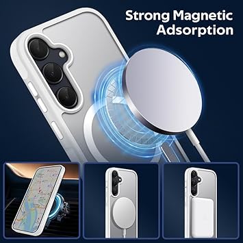 [Güçlü manyetik yapışma] Samsung Galaxy A55 5G için olan bu mıknatıslı kılıf manyetik bağlantıyı güçlendirir ve dahili N52 mıknatıslı halka ile otomatik hizalama sağlar. Manyetik ve kolayca şarj cihazına bağlanmanızı sağlar. Cüzdan, araç tutucu ve taşınabilir şarj aleti gibi MagSafe ile uyumludur.