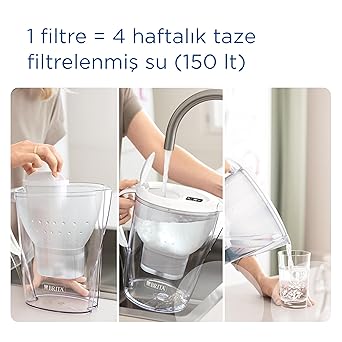 Geliştirilmiş BRITA filtreleme teknolojisine sahip ürünümüz sayesinde; tek bir filtre ile 150 litreye kadar yani yaklaşık 8 damacana taze filtrelenmiş su elinin altında!