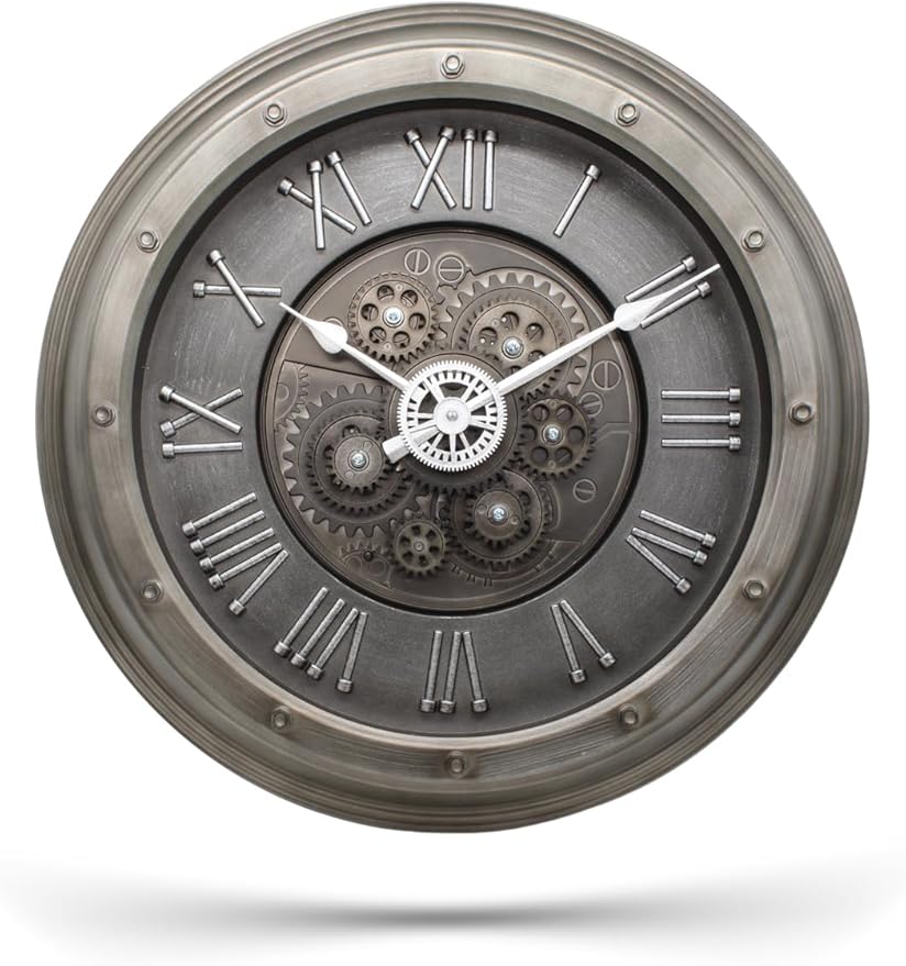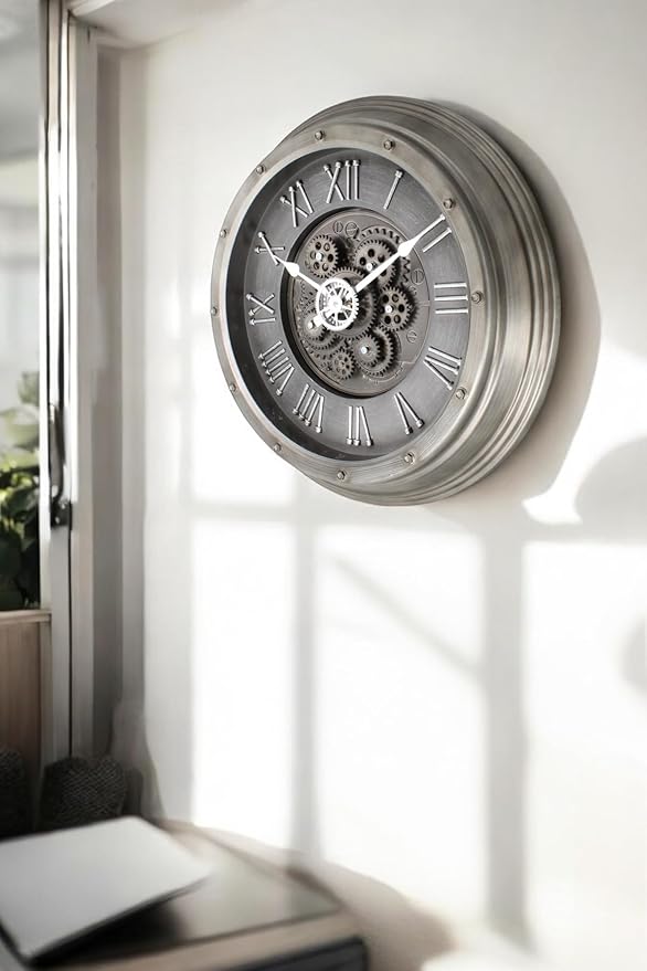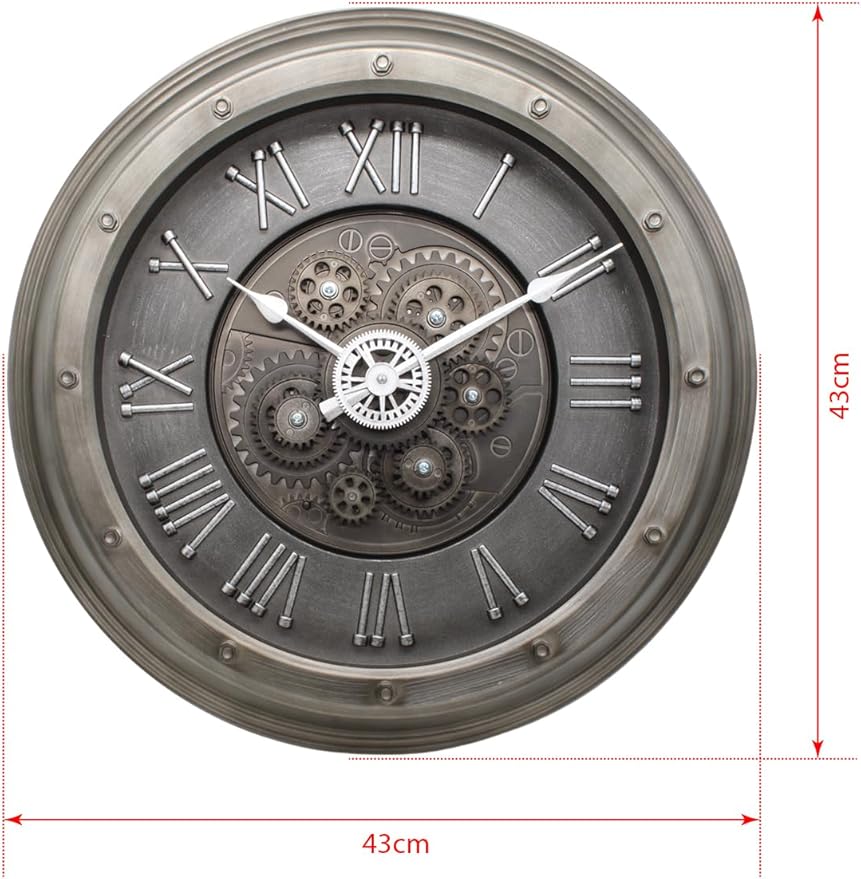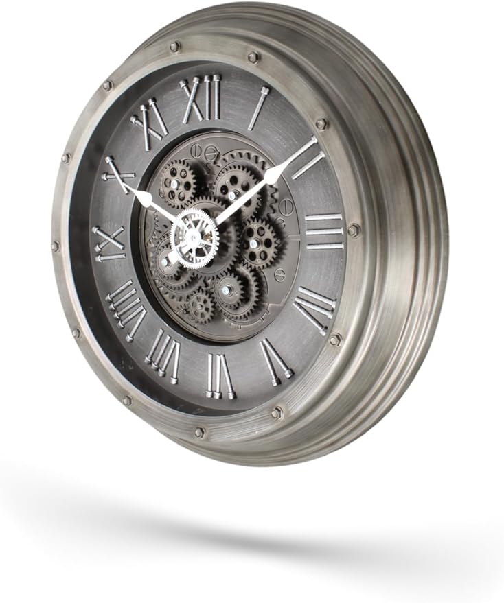 Mark Premium Serisi Antik Eskitme Kadranlı Döner Çarklı Ev ve Ofis Duvar Saati Kabartma Roma Rakamlı 40 CM Gri