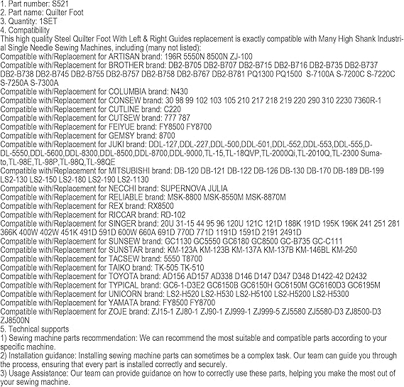 Marka -1 Set Quilter Foot Sol ve Sağ Kılavuz #S521 JUKI Marka DDL-5550 8700 TL-18QVP,TL-2010Q CONSEW Marka 210 220 2230 Brother Marka DB2-B737 ile uyumlu
