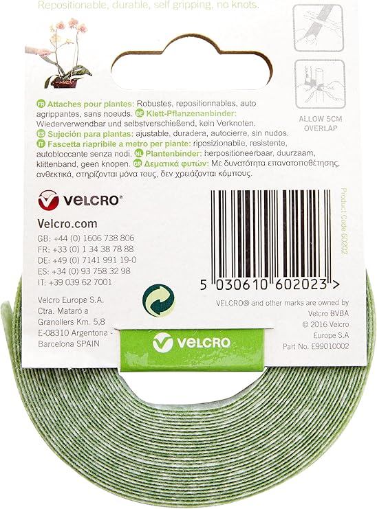 Marka ONE-WRAP Bitki Bağları Bandı, 12 mm x 5 m, Yeşil – Yeniden Kullanılabilir, Ağaç Bağları Askıları İçin Bitki Dostu Güvenli Çözüm, Bitki Klipsleri, VEL-EC60202, paket değişebilir