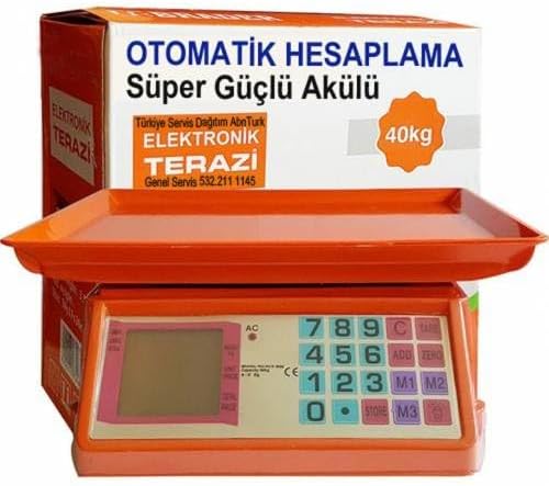 Market Terazisi 40kg Şarjlı Akülü Dijital Pazarcı Kantarı Hafızalı 2 Taraflı ışıklı Ekran