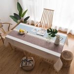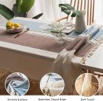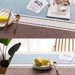 masa örtüsü dikdörtgen masa örtüsü, keten pamuk, su geçirmez, leke önleyici masa örtüsü, püskül tasarımı, yıkanabilir mutfak büfesi dekorasyonu için (mavi kahve şeritleri, 140 x 30