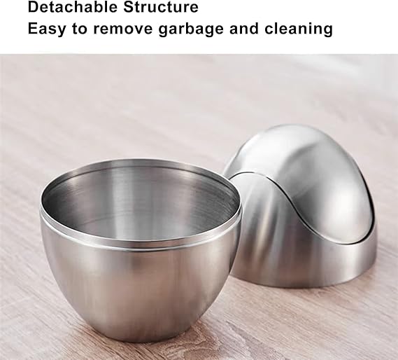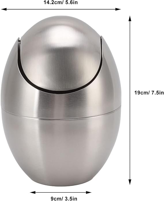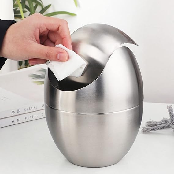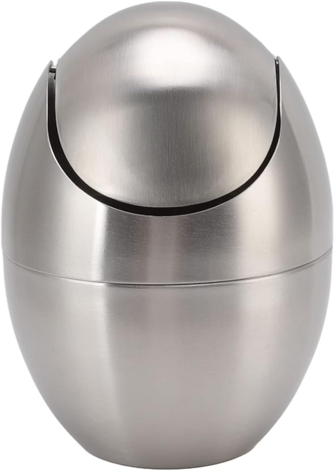 masaüstü çöp tenekesi, salıncak kapaklı mini tezgah çöp kutusu, paslanmaz çelik yumurta şekli çöp tenekesi, banyo yatak odası için küçük çöp tenekesi