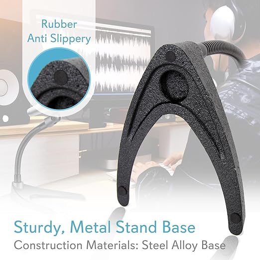 Masaüstü Mikrofon Standı – Evrensel Masa Üstü Mikrofon Tutucu, Esnek 8,2 inç Gooseneck Montajlı ve Sağlam U Şekilli Taban – Masa Masası veya Tezgah için Mükemmel – PMKS8, Siyah