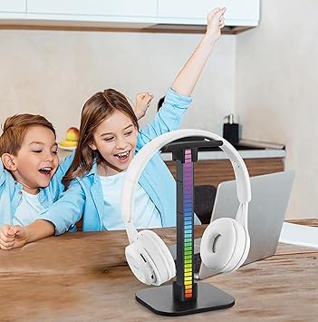 【Renkli Lamba Boncukları】 LED tabanlı RGB kulaklık standı İçinde müzik için özel bir mikrofon, dahili AGC otomatik kazanç kontrolü ve alıcı genliği olan 32 renkli lamba yuvası vardır.
