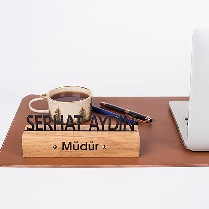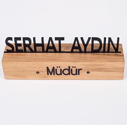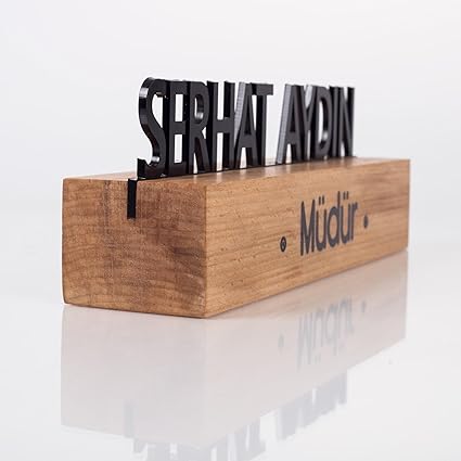 Masif Kayın Ahşap Masa İsimliği Masaüstü İsimlik Standı Siyah Akrilik Masa İsimliği