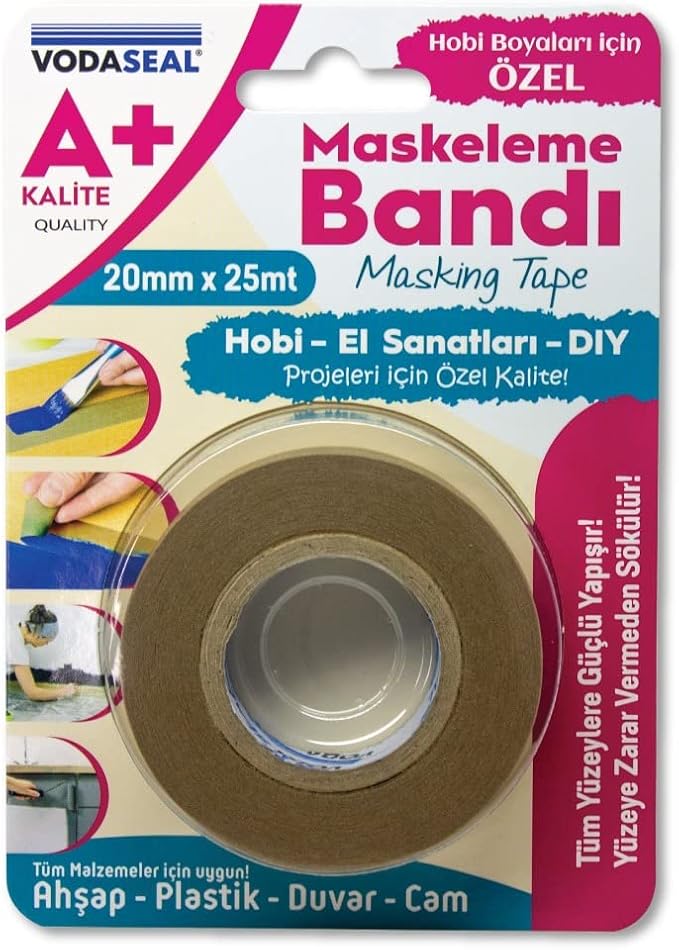 HOBİ EL SANATLARI VE dıy PROJELERİNDE BOYA İŞLERİNDE KULLANILMAK ÜZERE TASARLANMIŞ ÖZEL KALİTE YAPIŞKANLIĞA SAHİP KAĞIT BANTTIR. AHŞAP CAM DUVAR VB. YÜZEYE MÜKEMMEL YAPIŞIR VE YÜZEYE ZARAR VERMEDEN SÖKÜLÜR. HOBİ BOYALARI İÇİN İDEALDİR.
